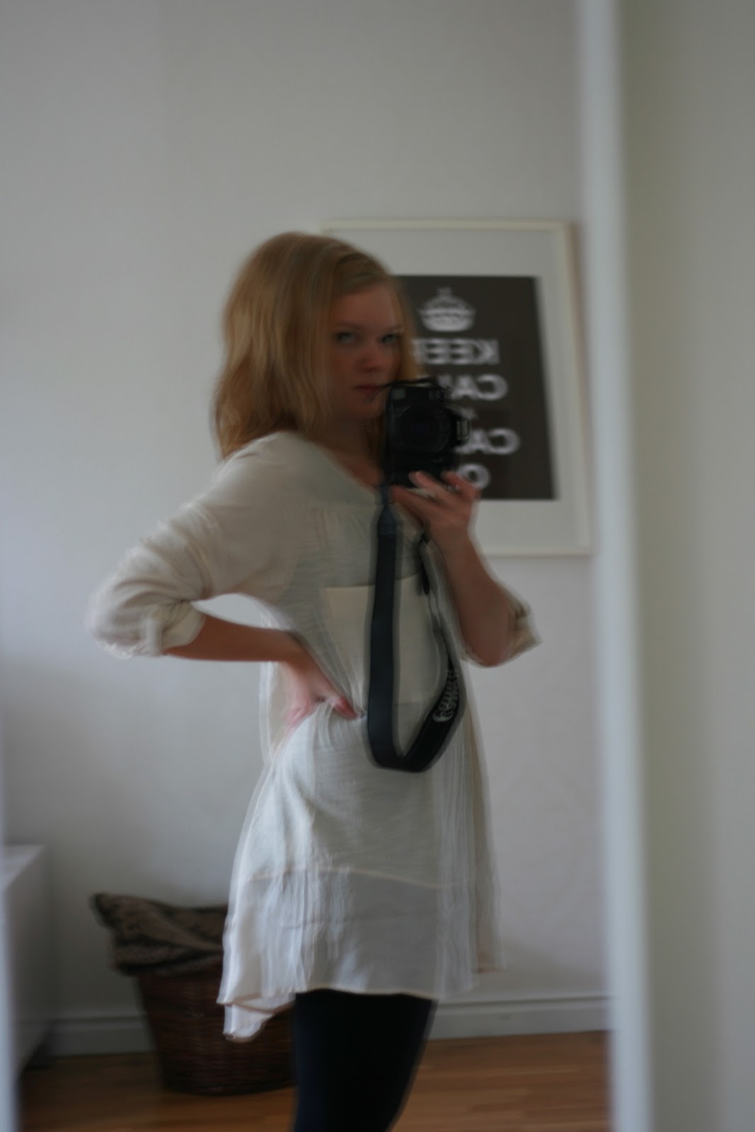 Tycker om kombinationen tights och ledig överdel. Fint och bekvämt! (Har medvetet valt suddiga och halvanonyma bilder eftersom jag inte riktigt vill framträda här på bloggen :-)